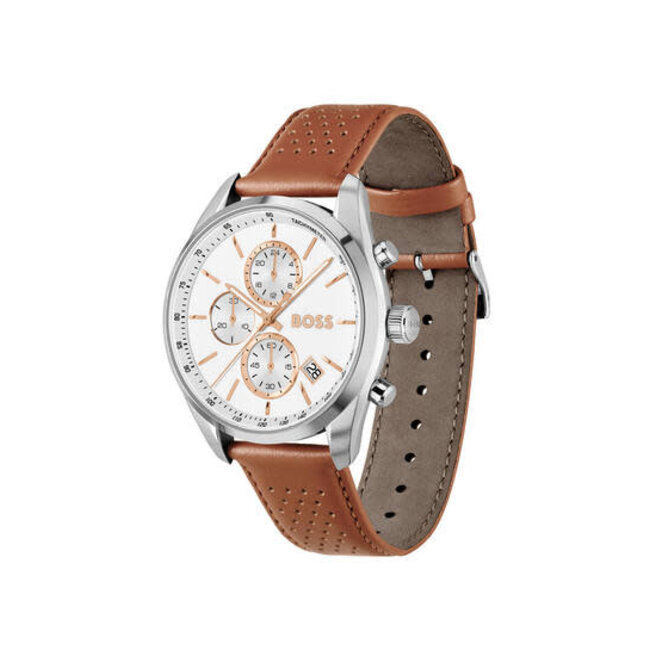 BOSS BOSS Horloge HB1514313 Grand Prix Staal Quartz Chronograaf met Bruin Leren Horlogeband 44mm