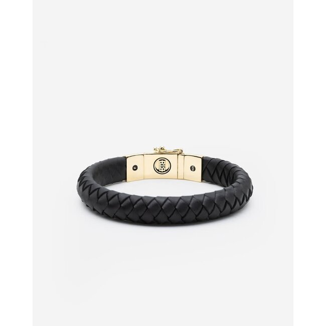 Buddha to Buddha Buddha to Buddha Armband 544BL GV G Ben Leer Zwart Zilver met Geelgouden Plating Maat G
