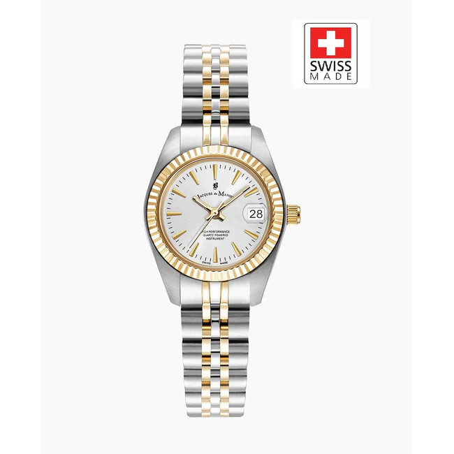 Jacques Du Manoir JWL02101 inspiration classic inspiration classic - 26.5mm - silver + gold stainless steel case - silver + gold stainless steel band- silver wijzerplaat Lees meer.