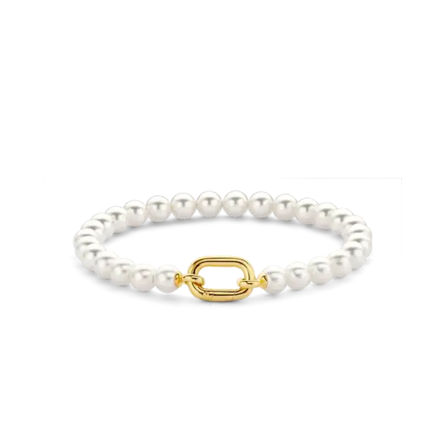 Deze vergulde TI SENTO parelarmband 23037YP staat symbool voor tijdloze elegantie en luxe. De armband bestaat uit een stroom van kleine glanzende parels, elk zorgvuldig geselecteerd om een gevoel van verfijnde elegantie uit te stralen. In het midden bevindt zich een geel verguld kenmerkend schakelslot, ontworpen om dit sieraad altijd bij je te kunnen dragen. De armband is gemaakt van eersteklas 925 sterling zilver en heeft een geelgouden plating die een vleugje levendigheid en glans toevoegt. De combinatie van de glanzende parels en de geelgouden schakel creëert een armband die klassieke charme perfect combineert met moderne allure. Combineer het sieraad met andere armbanden om je eigen unieke armparty te creëren. Verrijk je stijl met de ingetogen allure van parels en de luxe touch van de kenmerkende sluiting, waardoor deze armband een tijdloos accessoire is dat klasse en verfijning uitstraalt. Deze armband belichaamt de perfecte mix van elegantie, luxe en tijdloze schoonheid, waardoor het echt een fascinerend sieraad is. Net als al onze sieraden is deze armband nikkelvrij en hypoallergeen, wat niet alleen stijl belooft, maar ook comfort en kwaliteit die de tand des tijds doorstaat.